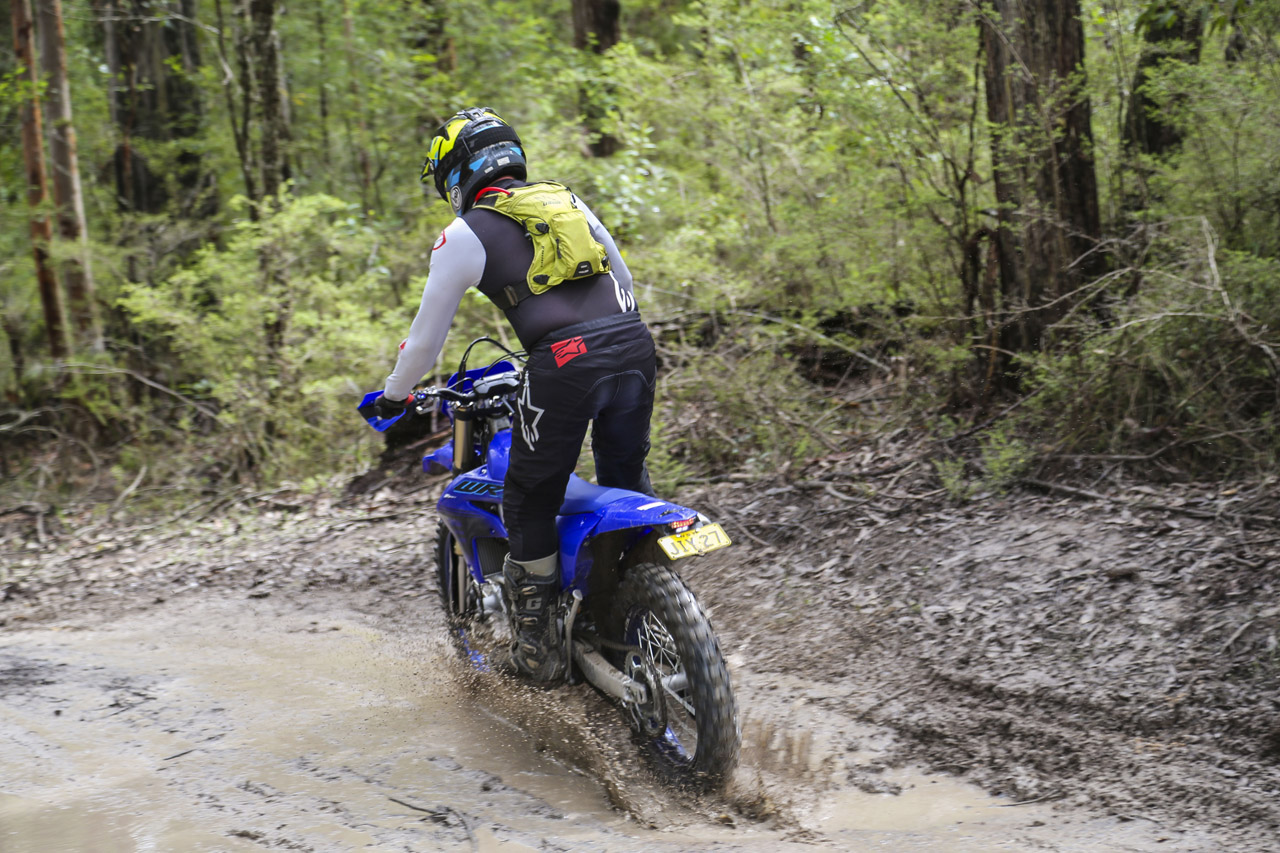 Dean Mosig, an experienced motocross rider from Peter Steven’s Dandenong (Vic), was the first to express his delight with the new WR450F. “The changes for the 2024 model mean this bike feels a lot like my YZ, but with bush attributes,” he said. “It’s easy for me to feel cramped on a bike, so the improved rider triangle is huge for me due to the extra comfort levels. The traction control button also received a good workout in the slippery conditions. The entire riding experience compared to the 2023 model is a step up.”